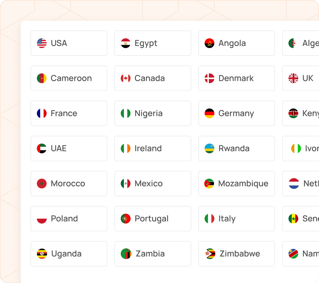 Apart from Africa, we also offer services in the USA, UK, BVI and a number of European countries.