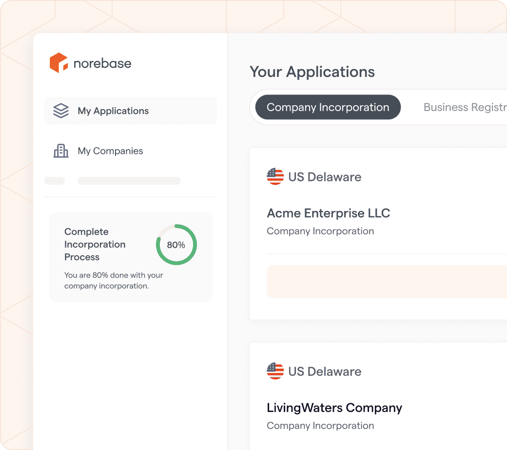 Norebase helps existing companies stay compliant by offering regulatory tracking, automated reminders, and expert filing support across several jurisdictions. Our AutoComply product helps you discover, manage tasks like annual returns, tax filings and so on to ensure continuous compliance.